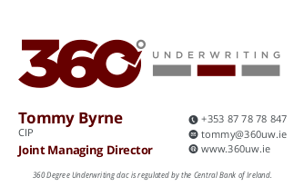 360 Degree Underwriting is a trading name of Ryan Specialty Europe GmbH. Ryan Specialty Europe GmbH (HRB 181011) is licenced by the Hamburg Trade Chamber (Handelskammer Hamburg). Registered Office: Hohe Bleichen 8, 20354, Hamburg, Germany. Irish Branch Office: Office 206, Hume Street House, 3-8 Hume Street, Dublin, D02 C624. Registered company number 910448. Regulated by the Central Bank of Ireland for conduct of business rules.